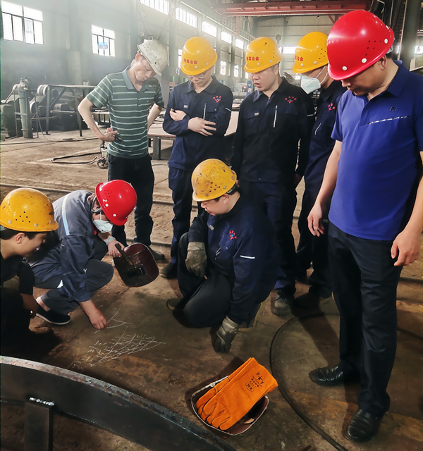 首先,熊小軍老師對湘冶的產品和工藝作了初步了解,制定出培訓方案,分批次對老廠和新廠焊工進行專業(yè)指導,針對不同的工件,詳細講解焊嘴角度、滾子轉速、焊接手法等焊接技術要點,以及如何避免焊接缺陷、對缺陷如何補救等技術難點。