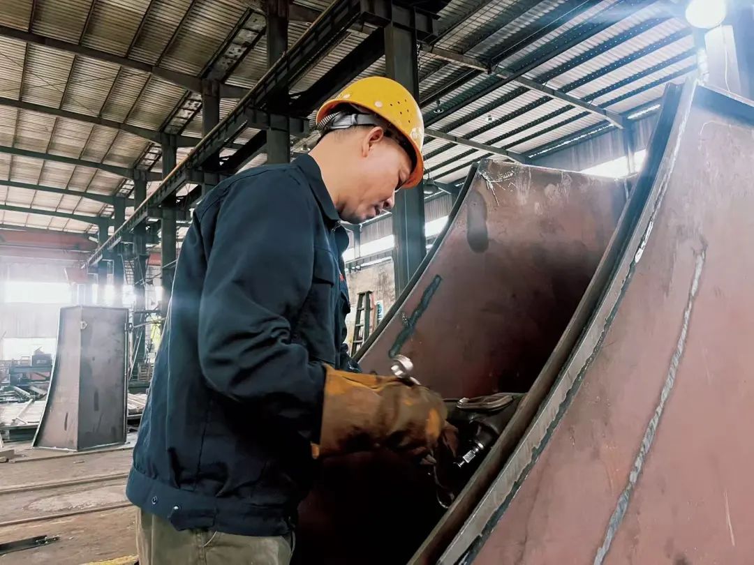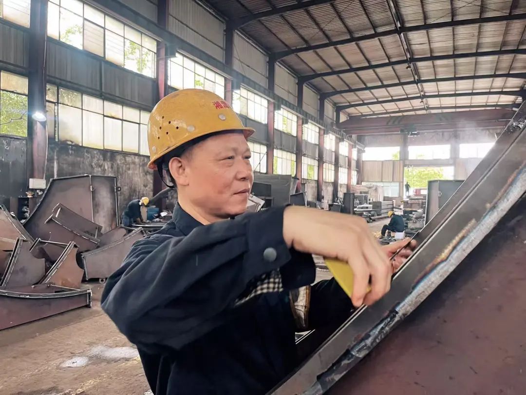 張躍雄曾獲湘潭縣技術能手稱號,是一位技藝精湛的鉚焊工。2015年,他曾在公司的筒體車間工作過一年多,積累了豐富的實踐經驗。后來,他為了追求更廣闊的發(fā)展空間,選擇到外地闖蕩。在外闖蕩的十年里,他見識了外面世界的繁華與競爭,也經歷了各種挑戰(zhàn)與困難。然而,他始終無法忘記湘冶這個讓他成長的地方。今年,他決定回歸家鄉(xiāng),尋求更穩(wěn)定的生活,于是聯(lián)系了當時的車間主任,表達了重返公司的意愿。公司破例吸收了他。重回班組后,他迅速適應了新的工作環(huán)境,憑借多面手的技能優(yōu)勢,不僅在焊接領域表現(xiàn)出色,還能在班組的其他工作中發(fā)揮重要作用。在越南項目中,張躍雄憑借其多面手的技能,解決了項目中的多個技術難題。他不僅完成了復雜的焊接任務,還通過優(yōu)化工藝流程,提高了生產效率。他的回歸為班組的發(fā)展注入了新的活力。他感慨地說:“外面的世界很精彩,但湘冶的溫暖和歸屬感,是任何地方都無法替代的。在這里,我找到了匠人精神的歸宿?!?